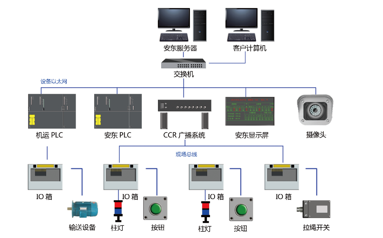 ANDON(安东)系统是应用在车间生产线上的实时呼叫系统,用来帮助生产线上的工人在一定生产节拍内、完成符合质量要求的产品装配任务。在生产过程中,各个工位的工人可以通过ANDON系统的按钮/拉绳开关等向班组长汇报产品质量问题,设备故障或其它帮助请求。通过ANDON系统的看板和呼叫音乐及ANDON管理软件及时将各个现场的问题广播通知到各班组长,提醒班组长尽快帮助解决问题。同时A N D O N 也可以通过L E D 大屏显示生产信息和设备、机运的故障。通过报表可以查询请求帮助、故障等相关历史信息及统计资料进行打印发布。
