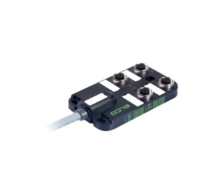 塑料外壳,4路端口,预注线缆,单信号或双信号。■ LED指示功能及高达IP67的防护等级;■ 标准配线长度3米,线缆材质为PUR,用户可以定制出线长度。