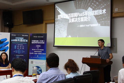随后,天津电信和宜科公司的物联网业务代表分别针对当前工业互联网的发展趋势以及企业的相关业务进行了主题演讲。宜科公司物联网事业部总监王孝强先生在演讲中指出,“工业互联网能够带来的不仅仅是产品质量和生产效率的提升、成本的降低,通过将大量工业技术原理、行业知识、基础工艺、模型工具规则化、软件化、模块化,并封装为可重复使用的微服务组件,第三方应用开发者可以面向特定工业场景开发不同的工业APP,进而构建成基于工业互联网平台的产业生态。”他表示,宜科公司的工业互联网平台技术能够基于工业互联网边缘采集智能终端提供的丰富协议接口,将工业现场的数据进行汇总,并结合PaaS层的数据分析系统进行有序化处理,随后基于企业自身的痛点和需求,将数据进行重组和关联,并利用Saas层的工业APP技术实现监控、报警等应用。目前,宜科公司正在为一汽大众天津新工厂搭建其专属的工业互联网平台,未来将面向广大中小企业进行推广。