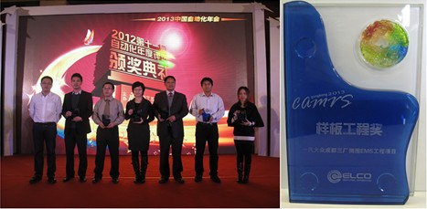 2013年1月22日,gongkong中国自动化市场研讨会(CAMRS)“可持续、再发展”盛会及第十一届自动化年度评选颁奖典礼在上海隆重召开。宜科(天津)电子有限公司系统集成项目“一汽大众成都三厂EMS工程项目”获得业内专家高度认可,获得“gongkong2013第十一届自动化年度样板工程奖”。